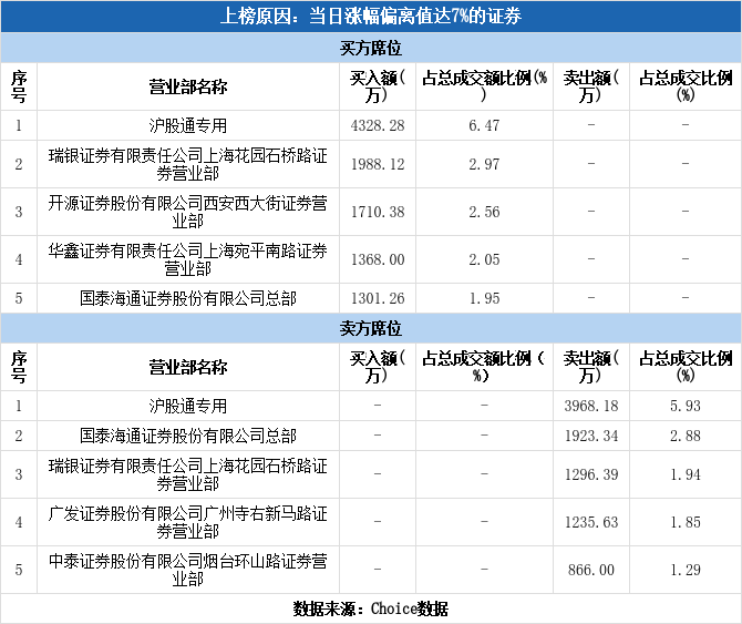 沪股通现身龙虎榜,西藏城投涨停(10-30)