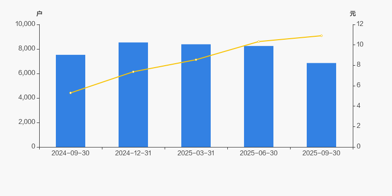 截至2025年9月30日,公司最新总股本为1.47亿股,其中流通股本为1.05亿股。户均持有流通股数量由上期的1.28万股上升至1.53万股,户均流通市值16.67万元。