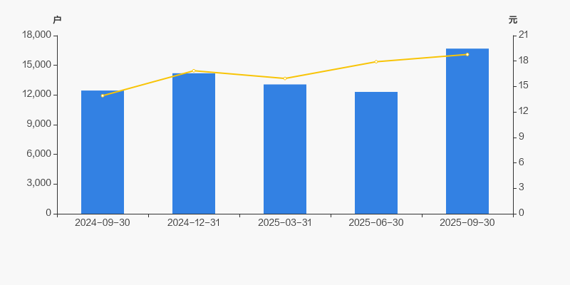 截至2025年9月30日,公司最新总股本为1.32亿股,其中流通股本为9609.46万股。户均持有流通股数量由上期的7804股下降至5759股,户均流通市值10.81万元。