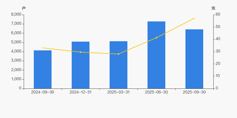 2024年9月30日至今,公司股东户数显著大幅增长,区间涨幅达55.05%。2024年9月30日至2025年9月30日区间股价上涨73.02%。