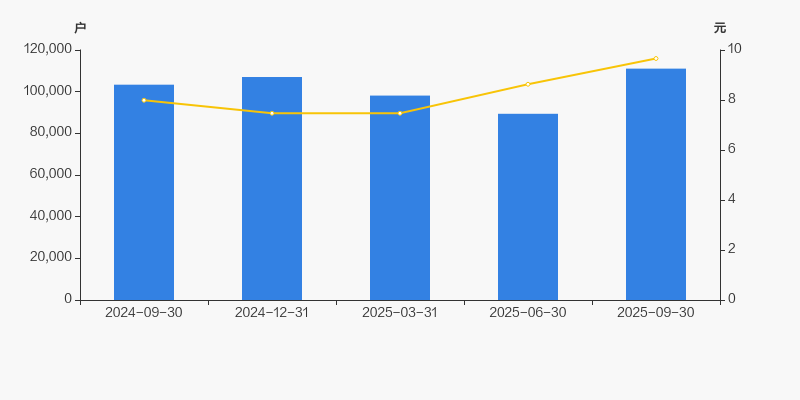2024年9月30日至今,公司股东户数有所增长,区间涨幅为7.46%。2024年9月30日至2025年9月30日区间股价上涨20.94%。