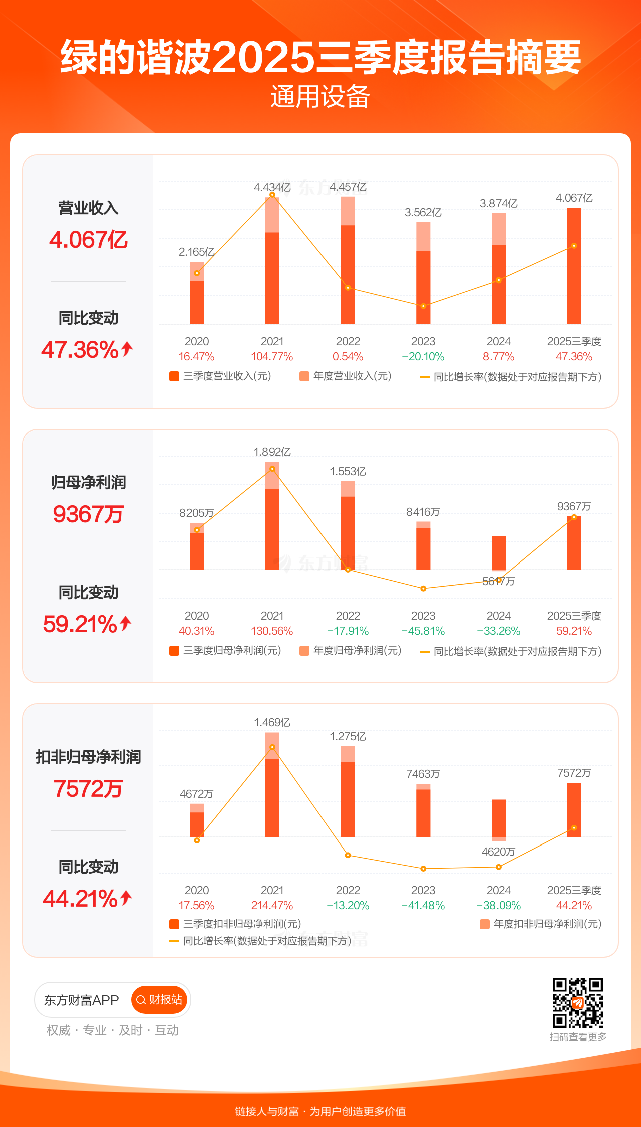 图解财报:绿的谐波前三季归母净利润9366.73万元,同比增长59.21%