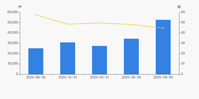 2024年9月30日至今,公司股东户数成倍增长,区间涨幅达109.49%。2024年9月30日至2025年9月30日区间股价下降22.39%。