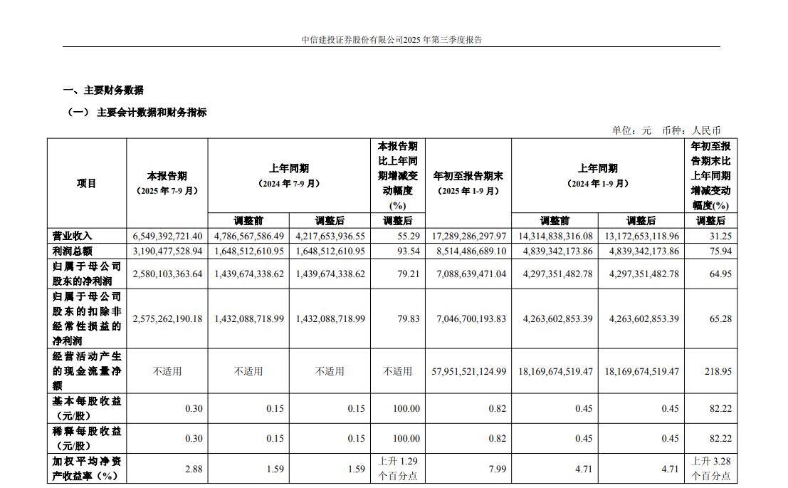 中信建投:第三季度净利润25.8亿元 同比增长79.21%