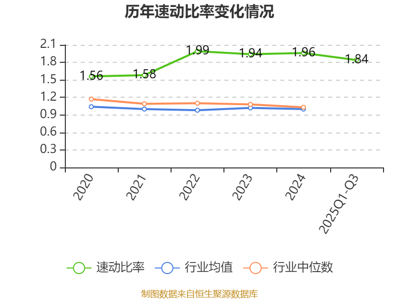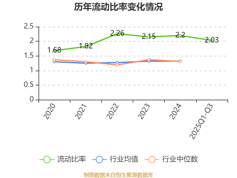 2025年前三季度,公司流动比率为2.03,速动比率为1.84。