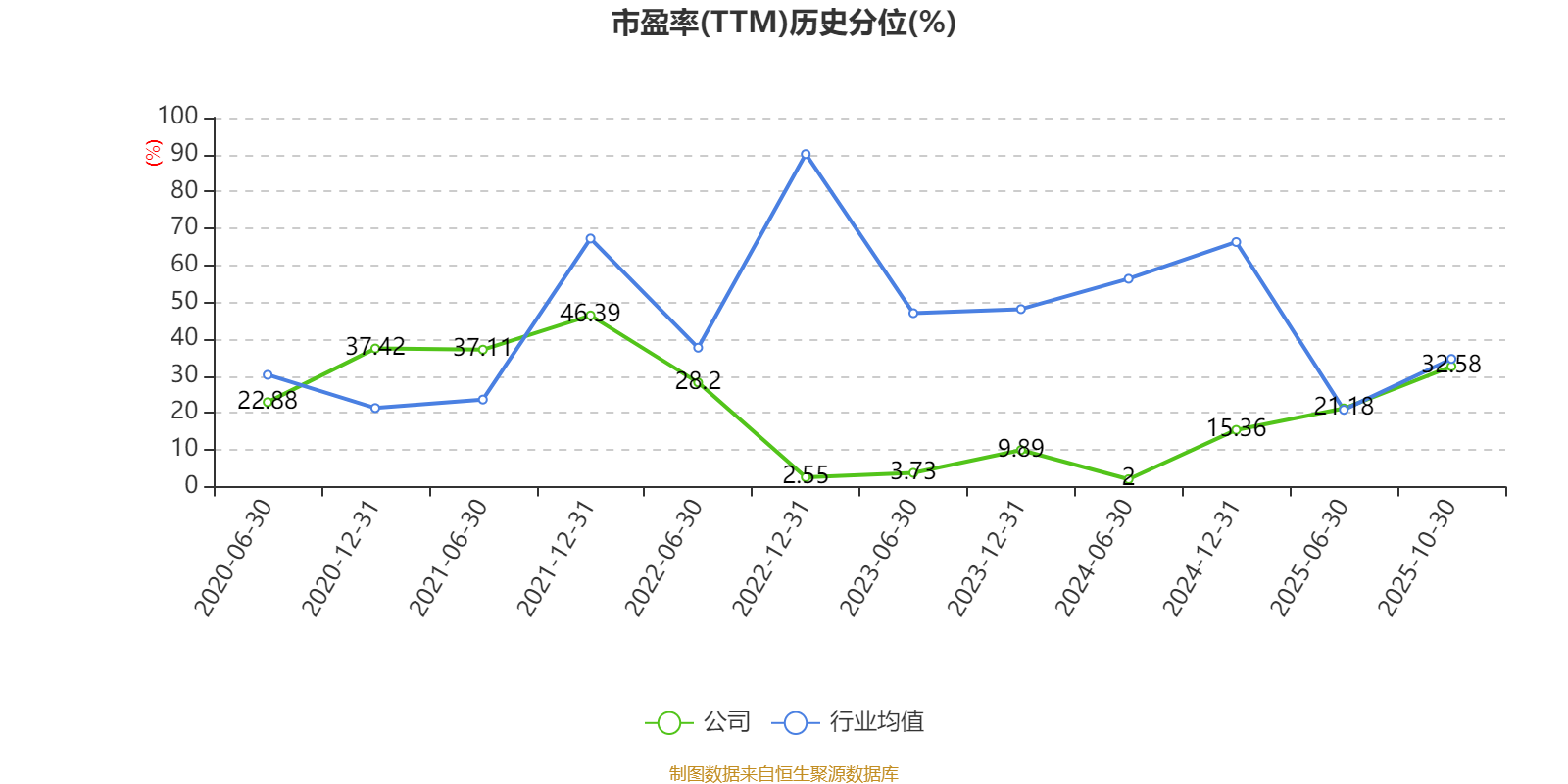 市盈率、市净率为负时,不显示当期分位数,会导致折线图中断。