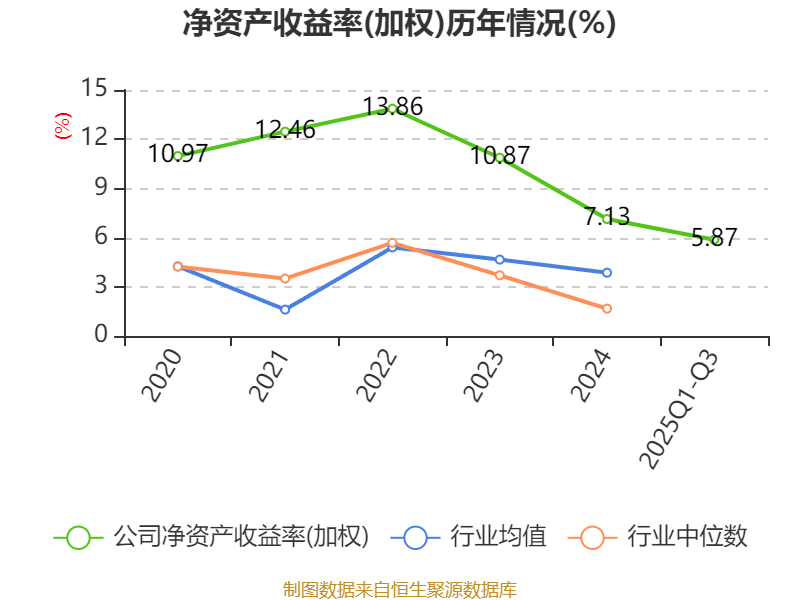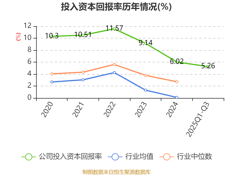 盈利能力方面, 2025年前三季度公司加权平均净资产收益率为5.87%,同比上升0.15个百分点。公司2025年前三季度投入资本回报率为5.26%,较上年同期上升0.55个百分点。