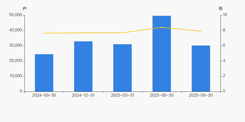 截至2025年9月30日,公司最新总股本为4.66亿股,其中流通股本为3.06亿股。户均持有流通股数量由上期的6160股上升至1.01万股,户均流通市值8.03万元。