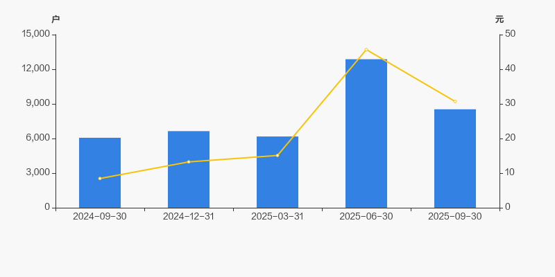 2024年9月30日至今,公司股东户数显著增长,区间涨幅为40.71%。2024年9月30日至2025年9月30日区间股价上涨263.55%。