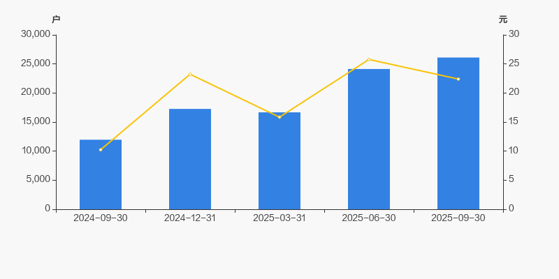 2024年9月30日至今,公司股东户数成倍增长,区间涨幅达118.21%。2024年9月30日至2025年9月30日区间股价上涨118.96%。