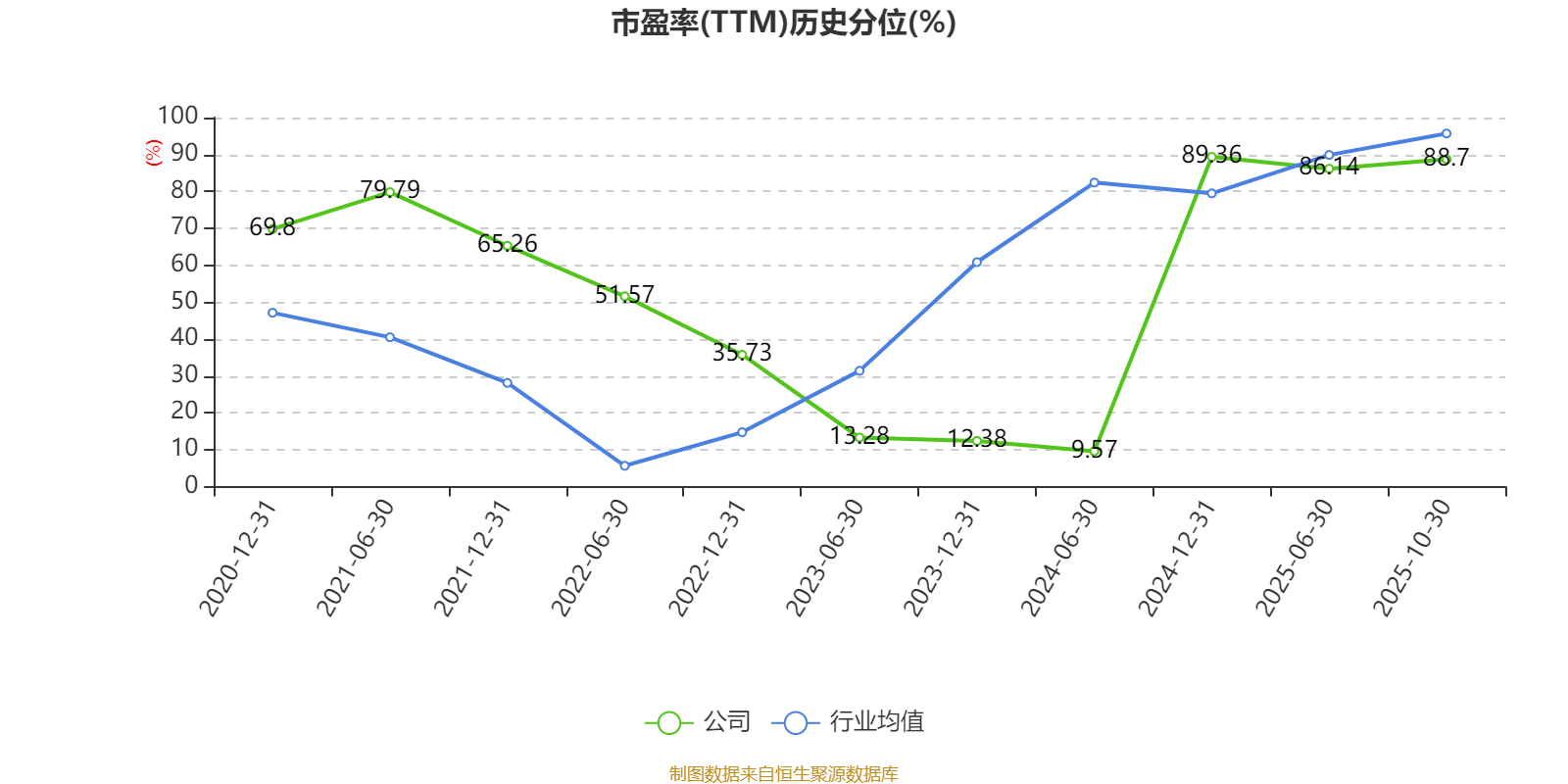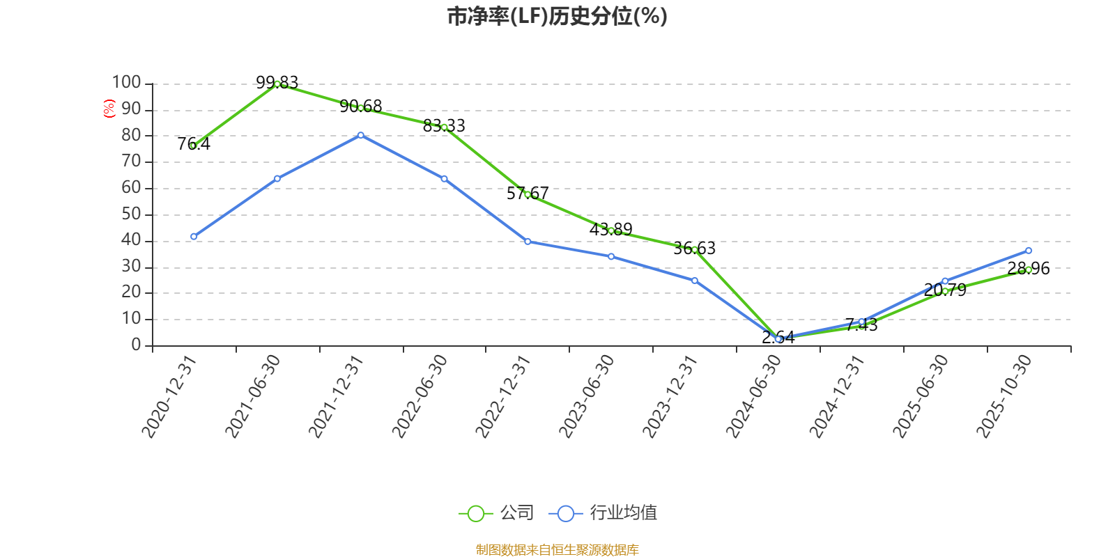 市盈率、市净率为负时,不显示当期分位数,会导致折线图中断。
