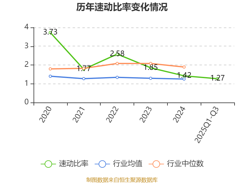 2025年前三季度,公司流动比率为1.98,速动比率为1.27。