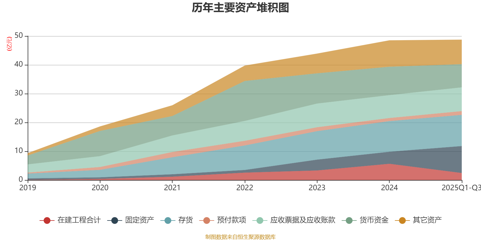 资产重大变化方面,截至2025年三季度末,公司固定资产较上年末增加124.3%,占公司总资产比重上升10.6个百分点;在建工程合计较上年末减少56.82%,占公司总资产比重下降6.61个百分点;货币资金较上年末减少18.37%,占公司总资产比重下降3.82个百分点;应收票据及应收账款较上年末增加3.79%,占公司总资产比重上升0.54个百分点。