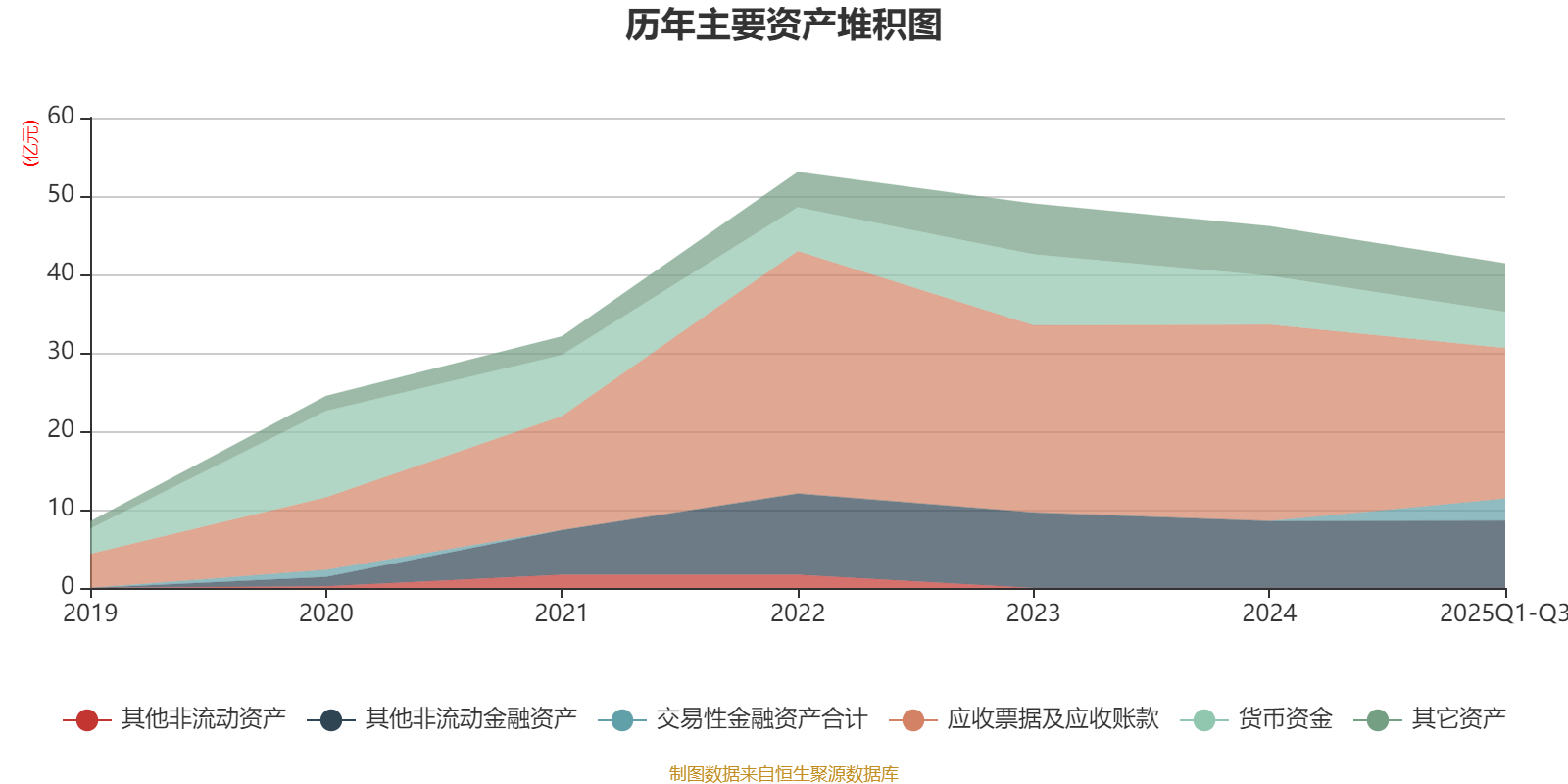资产重大变化方面,截至2025年三季度末,公司应收票据及应收账款较上年末减少23.33%,占公司总资产比重下降7.9个百分点;交易性金融资产合计占公司总资产的6.76%,上年末为0;货币资金较上年末减少26.07%,占公司总资产比重下降2.38个百分点;其他非流动金融资产较上年末增加0.67%,占公司总资产比重上升2.25个百分点。
