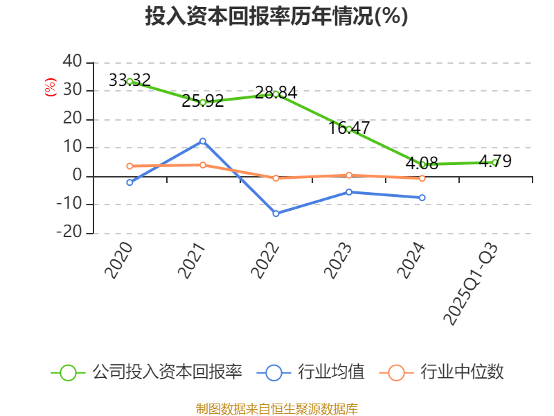 盈利能力方面, 2025年前三季度公司加权平均净资产收益率为5.37%,同比下降0.93个百分点。公司2025年前三季度投入资本回报率为4.79%,较上年同期下降0.74个百分点。