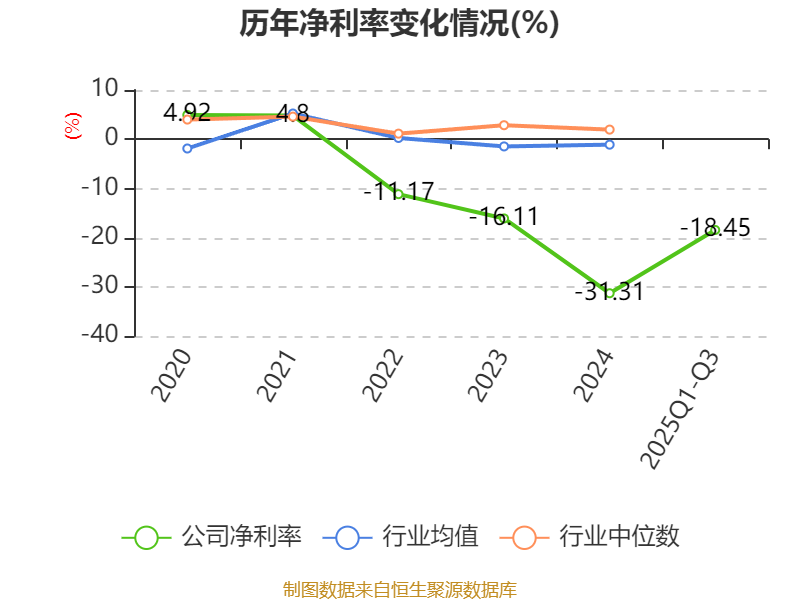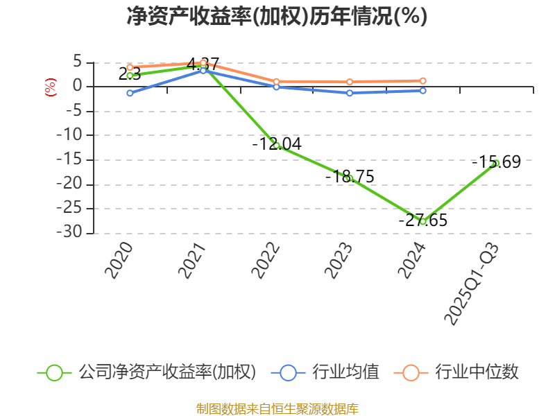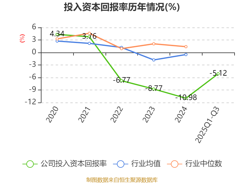 盈利能力方面, 2025年前三季度公司加权平均净资产收益率为-15.69%,同比下降1.31个百分点。公司2025年前三季度投入资本回报率为-5.12%,较上年同期上升1.12个百分点。