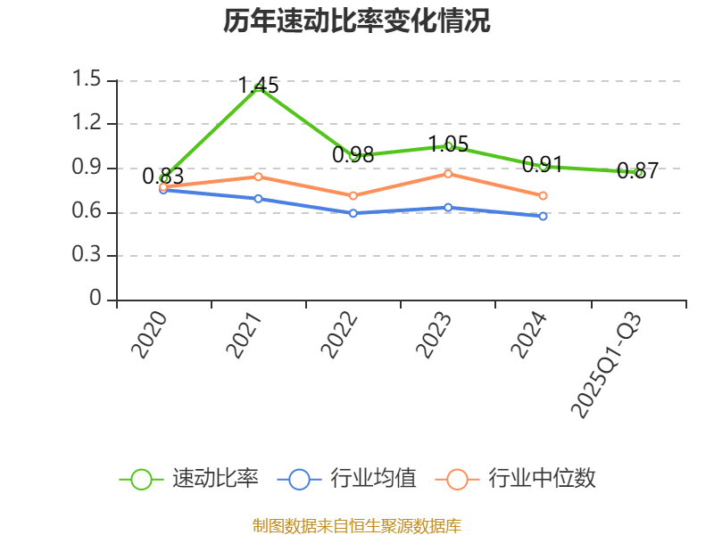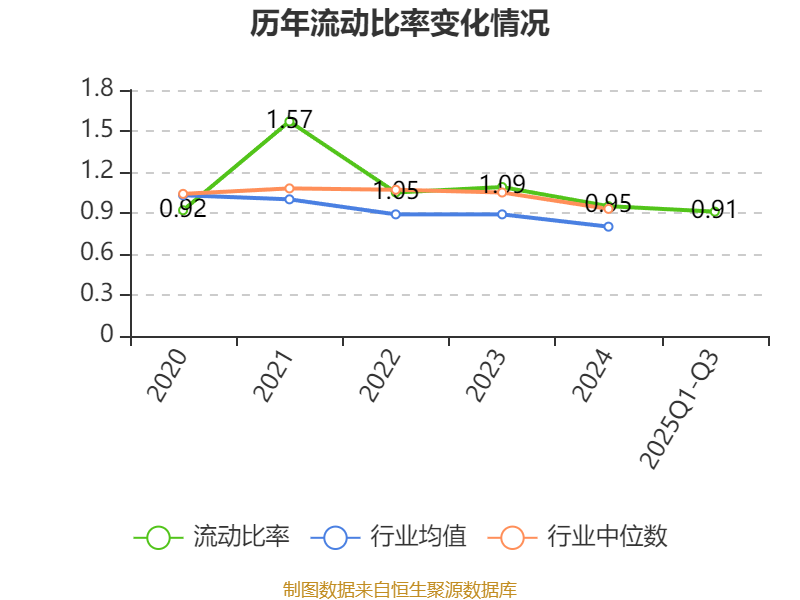 2025年前三季度,公司流动比率为0.91,速动比率为0.87。