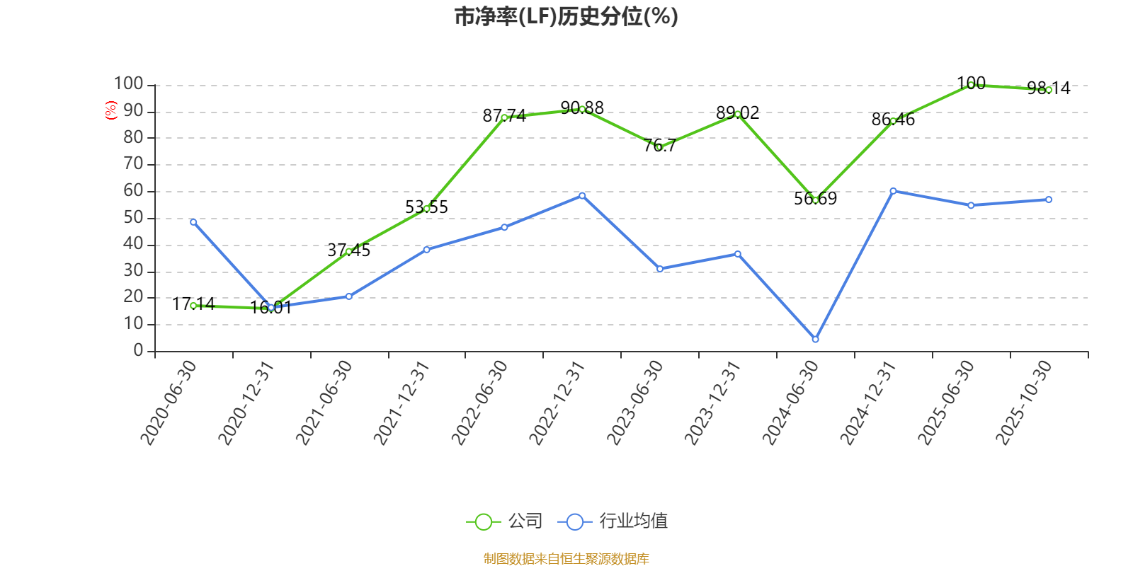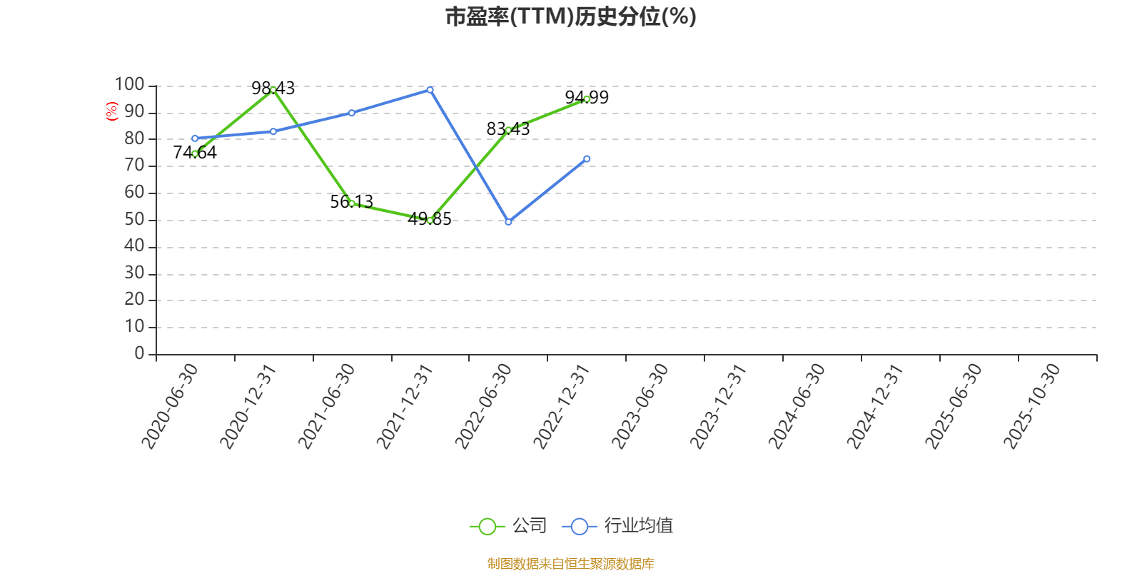 市盈率、市净率为负时,不显示当期分位数,会导致折线图中断。