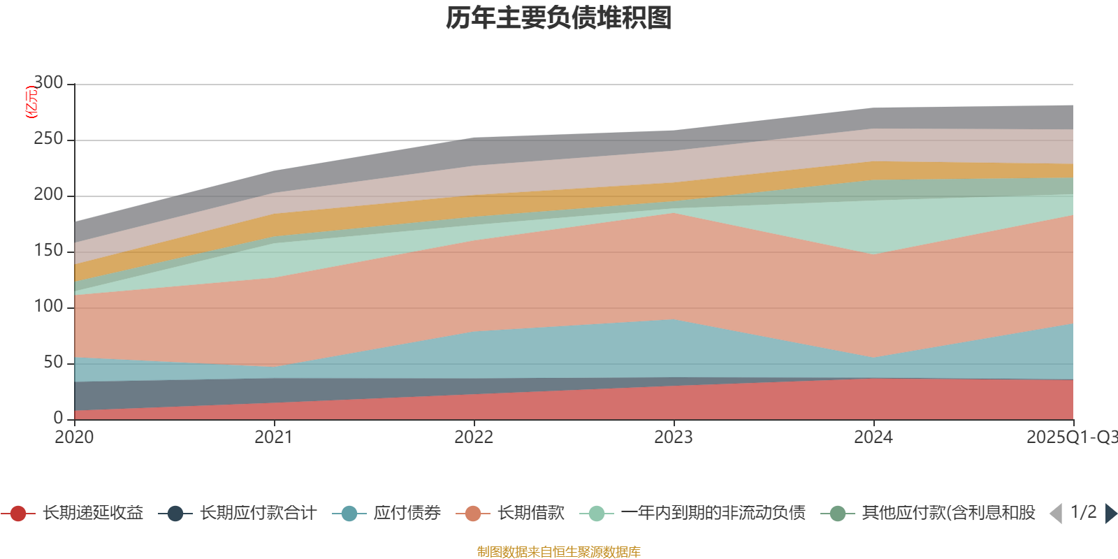 负债重大变化方面,截至2025年三季度末,公司应付债券较上年末增加177.82%,占公司总资产比重上升5.97个百分点;一年内到期的非流动负债较上年末减少61.3%,占公司总资产比重下降5.7个百分点;应付票据及应付账款较上年末减少25.86%,占公司总资产比重下降0.85个百分点;其他应付款(含利息和股利)较上年末减少19.34%,占公司总资产比重下降0.72个百分点。