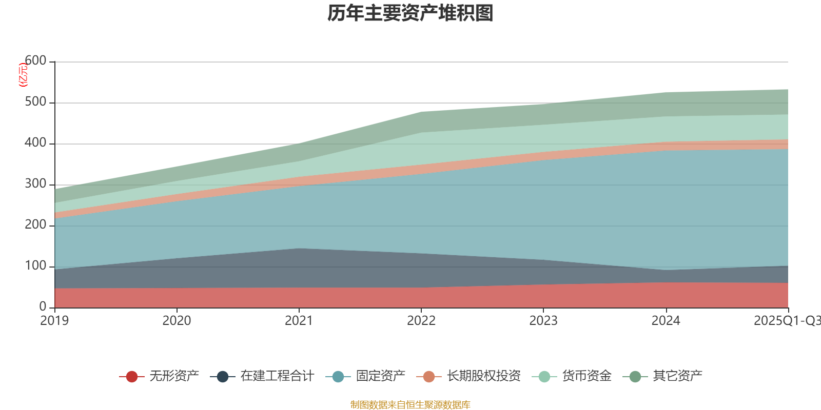 资产重大变化方面,截至2025年三季度末,公司固定资产较上年末减少2.49%,占公司总资产比重下降2.13个百分点;在建工程合计较上年末增加38.72%,占公司总资产比重上升2.11个百分点;其他应收款(含利息和股利)较上年末增加65.04%,占公司总资产比重上升0.53个百分点;其他非流动金融资产较上年末减少100%,占公司总资产比重下降0.43个百分点。