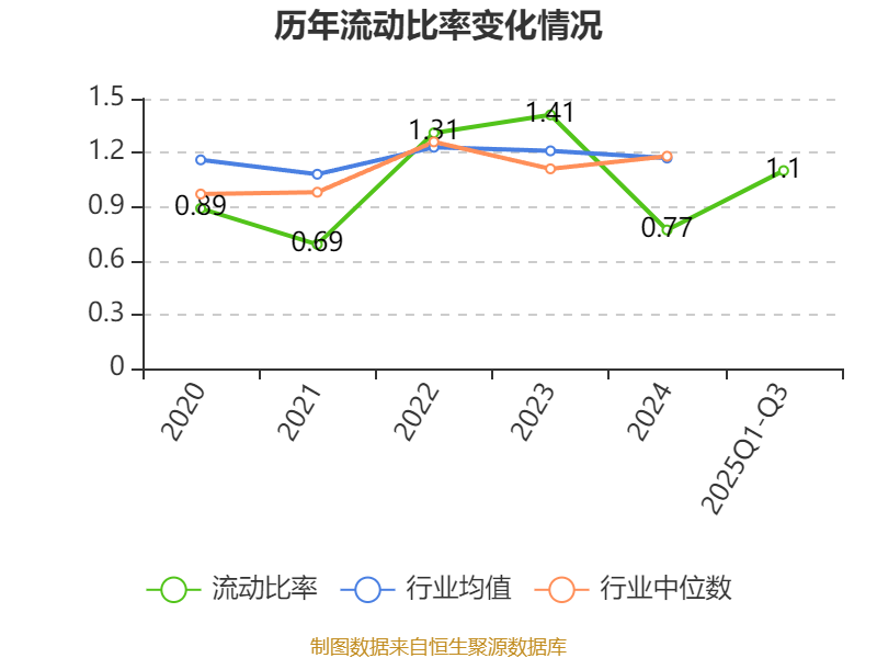 2025年前三季度,公司流动比率为1.1,速动比率为1.04。