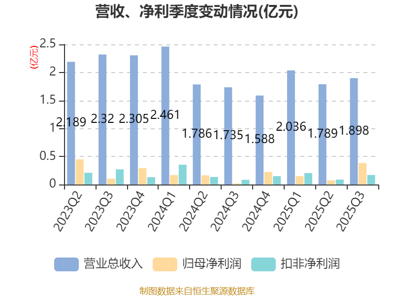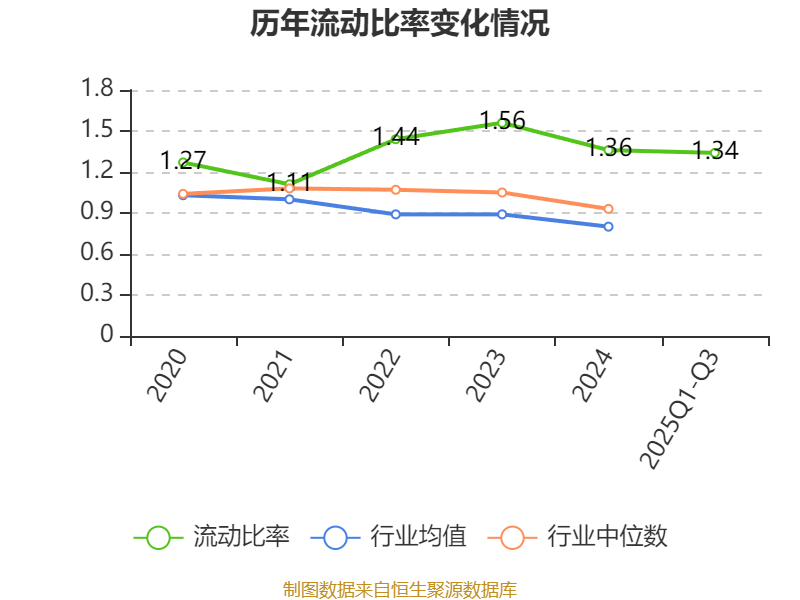 2025年前三季度,公司流动比率为1.34,速动比率为1.1。