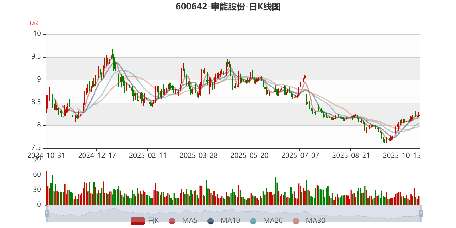 中证智能财讯申能股份(600642)10月31日披露2025年第三季度报告。前三季度公司实现营业总收入209.32亿元,同比下降6.44%;归母净利润33.15亿元,同比增长1.04%;扣非净利润31.69亿元,同比增长7.85%;经营活动产生的现金流量净额为73.19亿元,同比增长19.39%;报告期内,申能股份基本每股收益为0.667元,加权平均净资产收益率为8.74%。