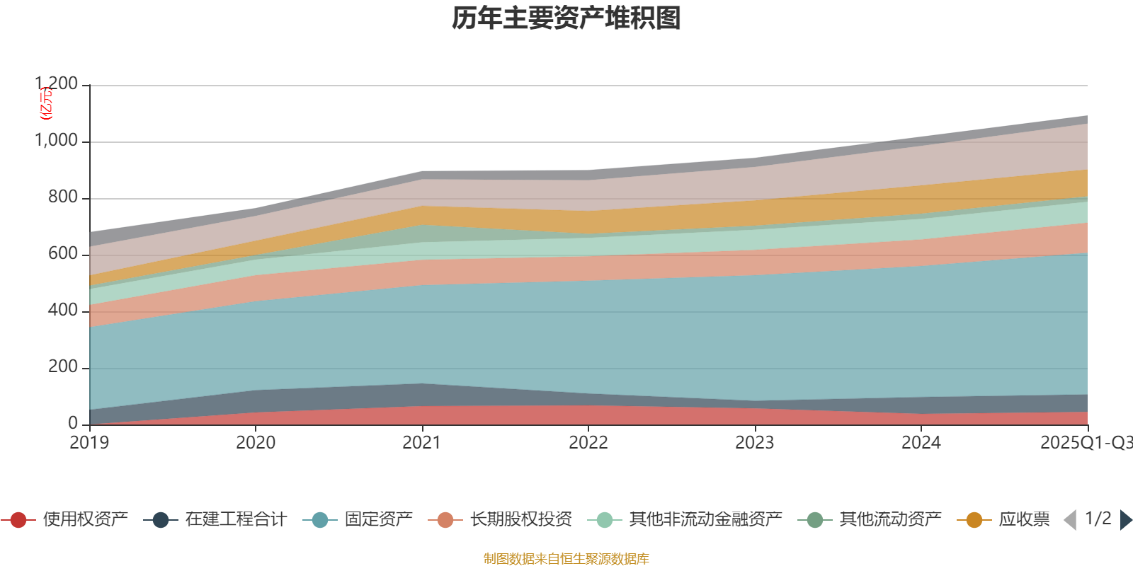 资产重大变化方面,截至2025年三季度末,公司应收票据及应收账款较上年末减少4.99%,占公司总资产比重下降1.13个百分点;货币资金较上年末增加16.1%,占公司总资产比重上升1.12个百分点;长期股权投资较上年末增加13.34%,占公司总资产比重上升0.51个百分点;存货较上年末减少32.05%,占公司总资产比重下降0.43个百分点。