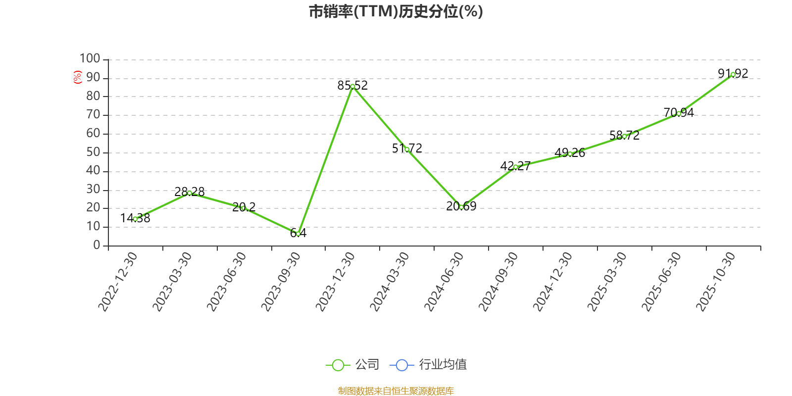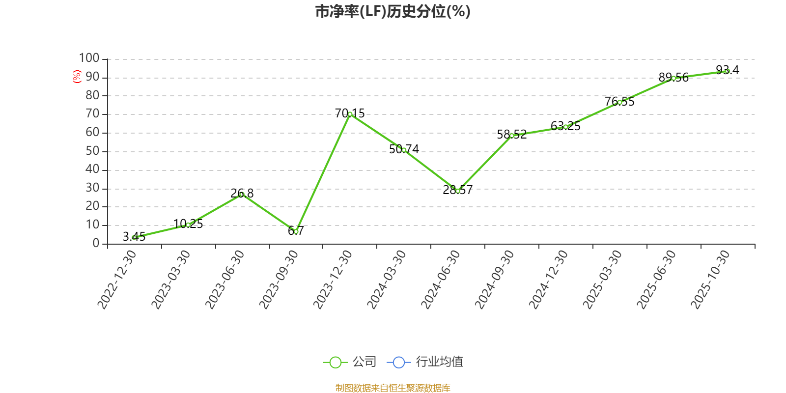 市盈率、市净率为负时,不显示当期分位数,会导致折线图中断。