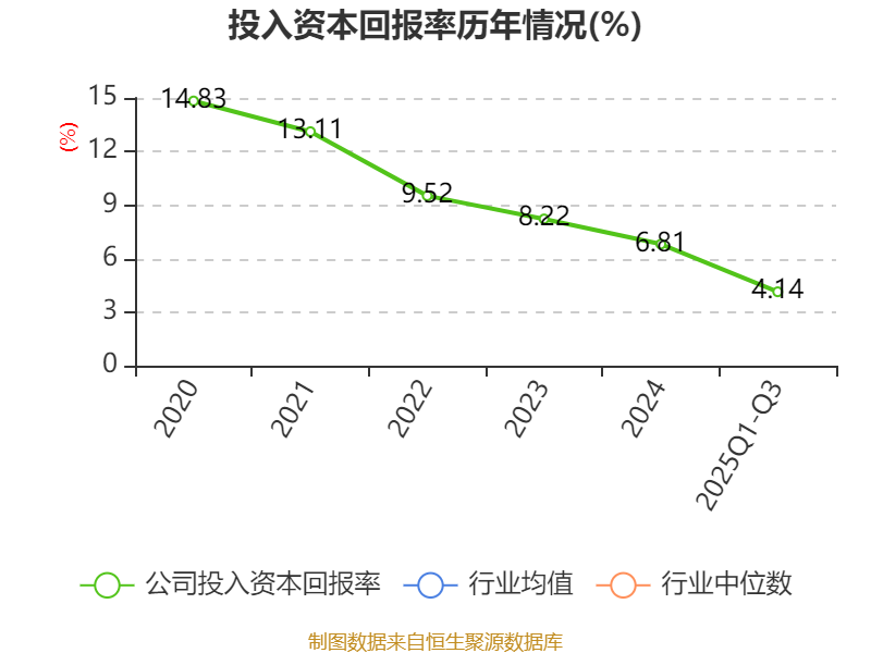 盈利能力方面, 2025年前三季度公司加权平均净资产收益率为5.47%,同比下降1.58个百分点。公司2025年前三季度投入资本回报率为4.14%,较上年同期下降0.84个百分点。