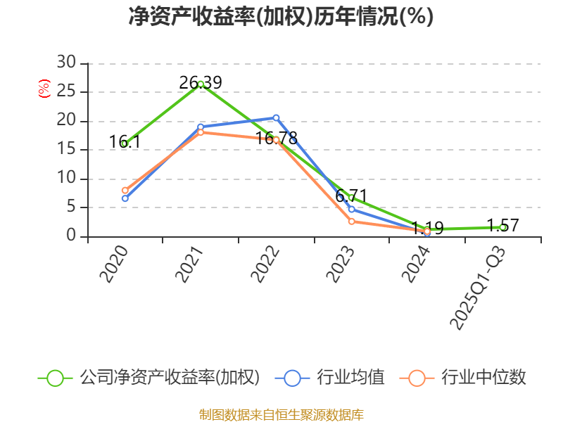 盈利能力方面, 2025年前三季度公司加权平均净资产收益率为1.57%,同比下降0.51个百分点。公司2025年前三季度投入资本回报率为1.63%,较上年同期上升0.13个百分点。