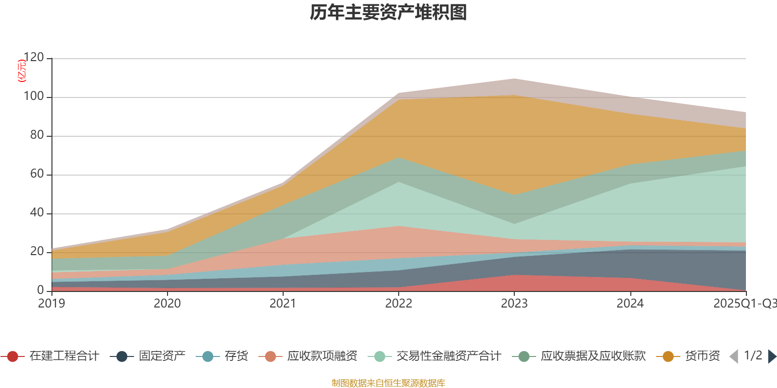 资产重大变化方面,截至2025年三季度末,公司货币资金较上年末减少56.15%,占公司总资产比重下降13.65个百分点;交易性金融资产合计较上年末增加31.19%,占公司总资产比重上升12.72个百分点;固定资产较上年末增加39.04%,占公司总资产比重上升7.55个百分点;在建工程合计较上年末减少95.76%,占公司总资产比重下降6.36个百分点。