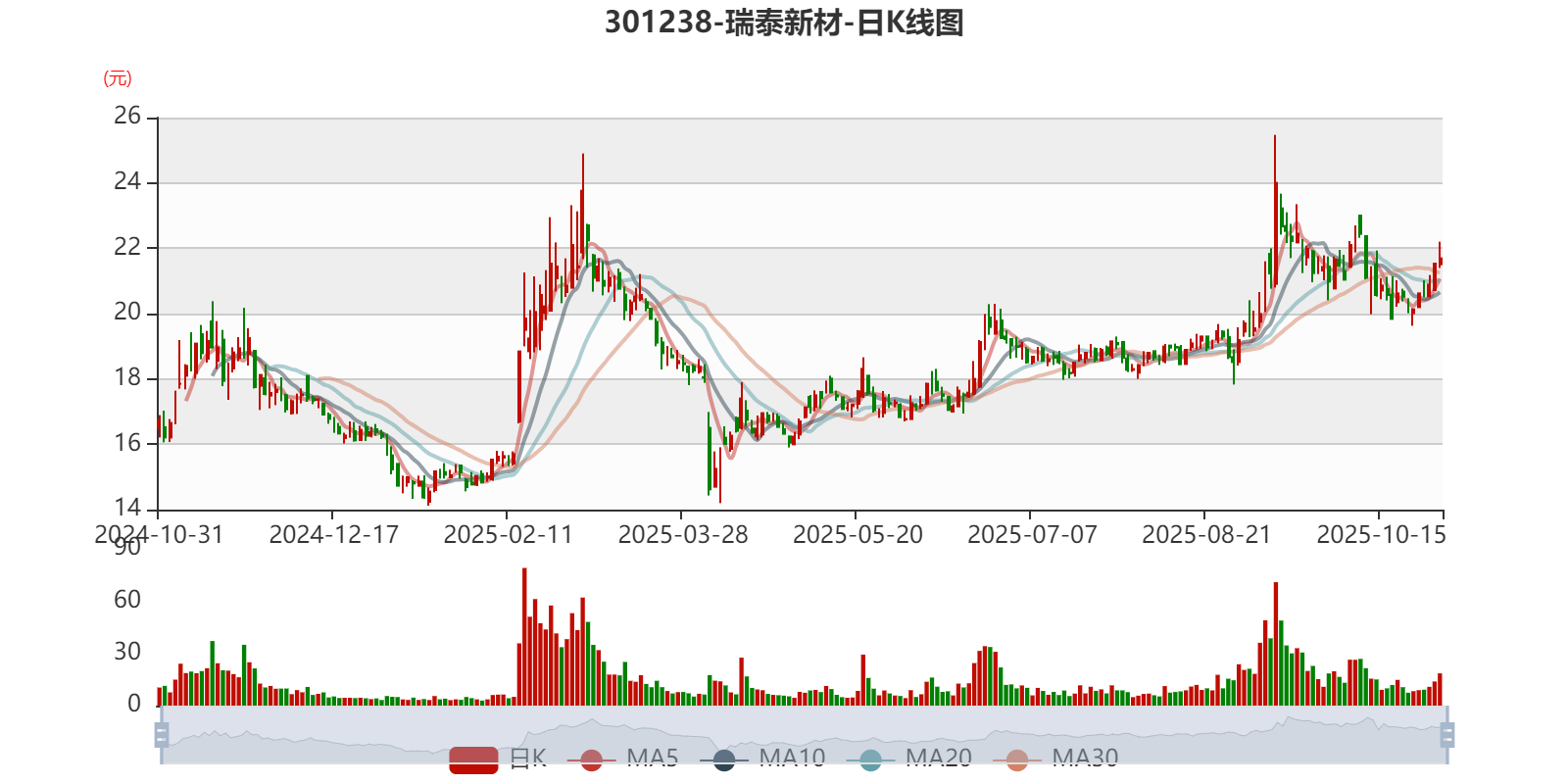以10月30日收盘价计算,瑞泰新材目前市盈率(TTM)约为300.47倍,市净率(LF)约2.2倍,市销率(TTM)约8.04倍。