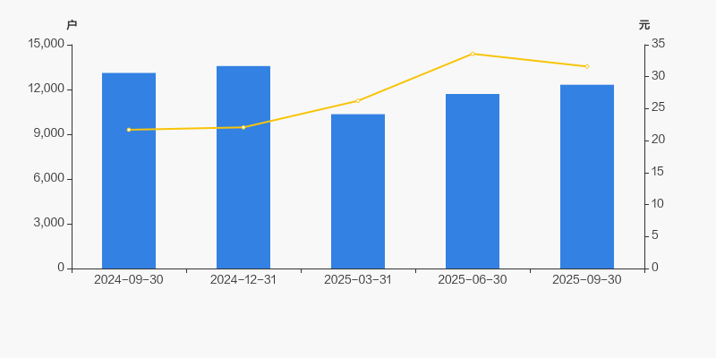 截至2025年9月30日,公司最新总股本为2.02亿股,其中流通股本为1.87亿股。户均持有流通股数量由上期的1.6万股下降至1.52万股,户均流通市值47.95万元。