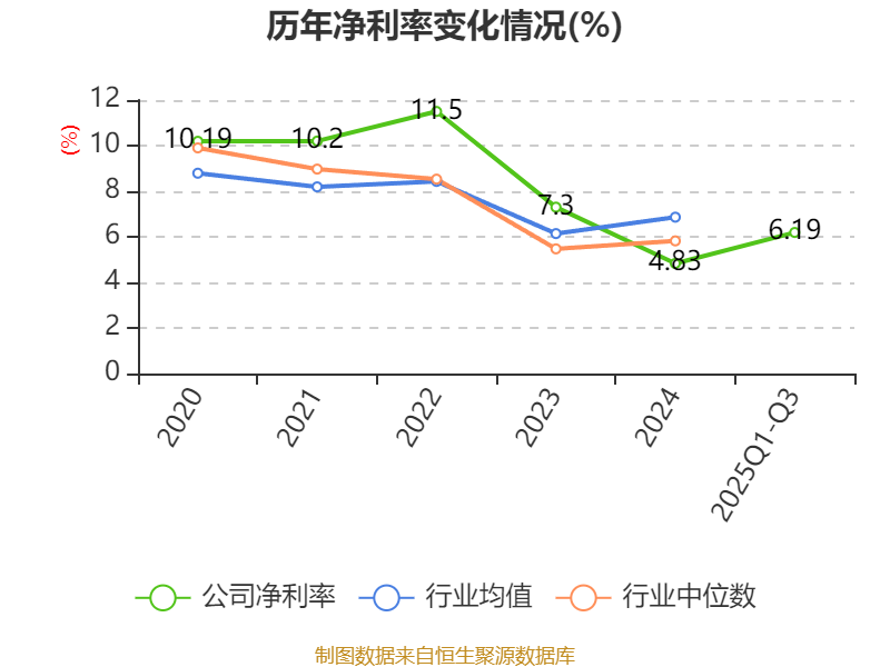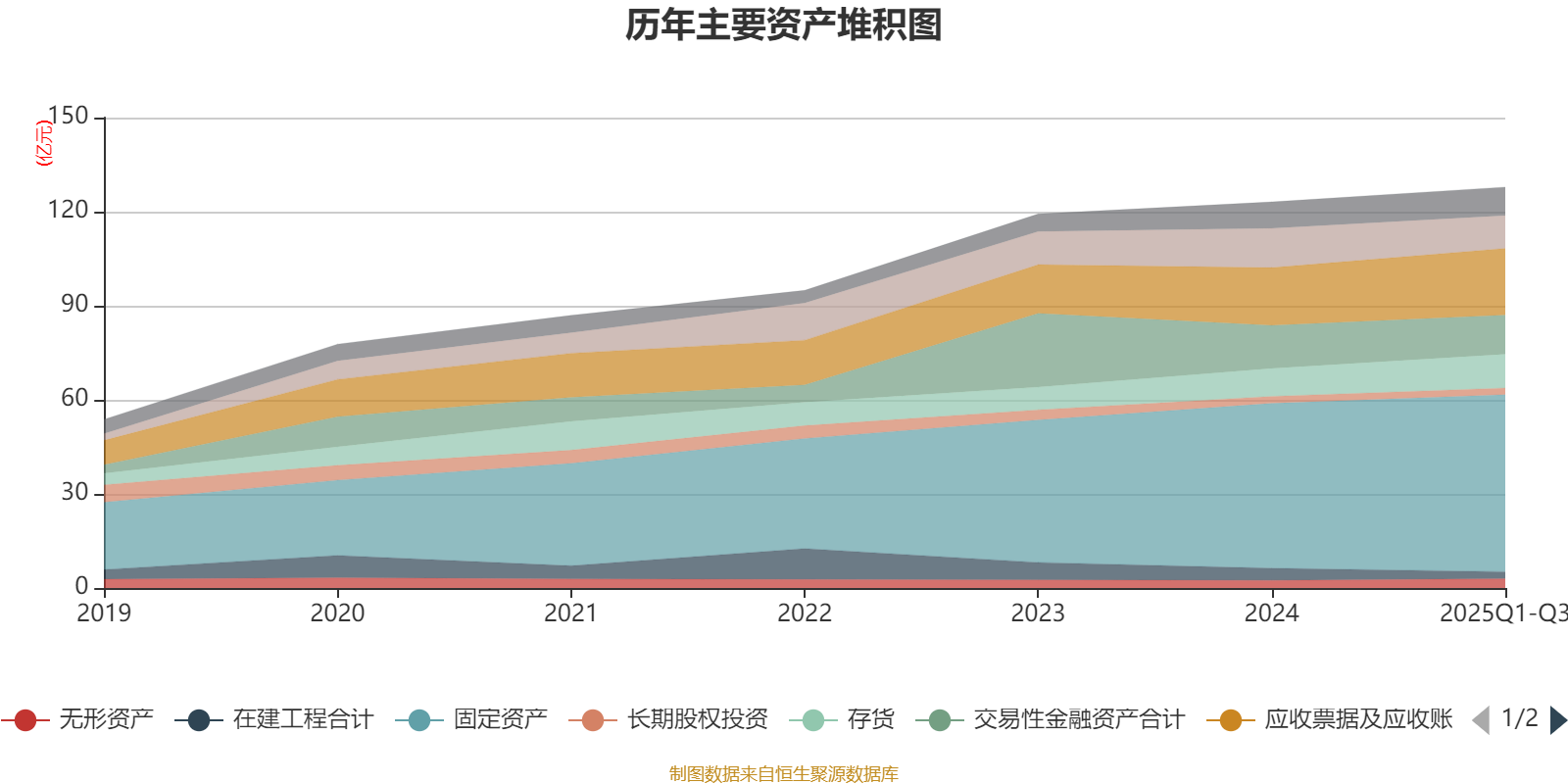 资产重大变化方面,截至2025年三季度末,公司货币资金较上年末减少16.26%,占公司总资产比重下降1.97个百分点;应收票据及应收账款较上年末增加15.27%,占公司总资产比重上升1.65个百分点;固定资产较上年末增加7.43%,占公司总资产比重上升1.48个百分点;在建工程合计较上年末减少42%,占公司总资产比重下降1.39个百分点。
