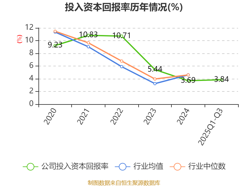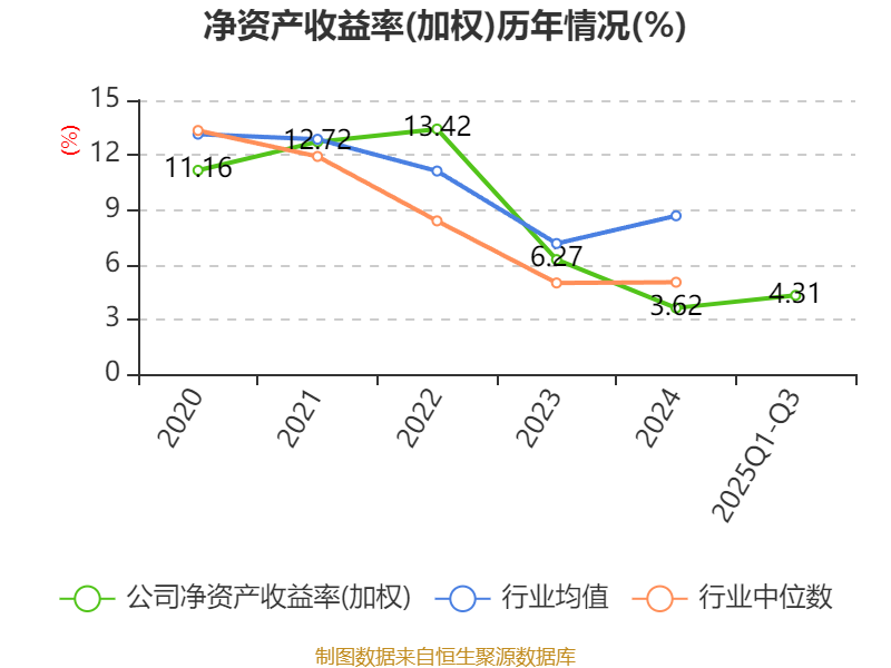 盈利能力方面, 2025年前三季度公司加权平均净资产收益率为4.31%,同比上升0.63个百分点。公司2025年前三季度投入资本回报率为3.84%,较上年同期上升0.37个百分点。
