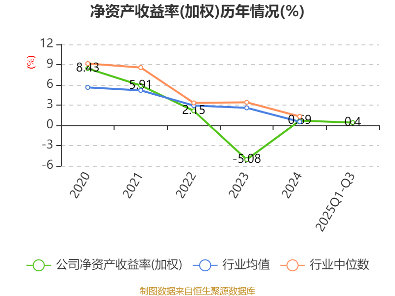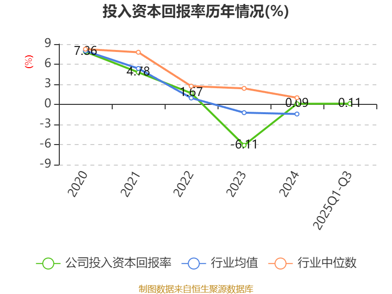盈利能力方面, 2025年前三季度公司加权平均净资产收益率为0.4%,同比下降0.3个百分点。公司2025年前三季度投入资本回报率为0.11%,较上年同期下降0.37个百分点。