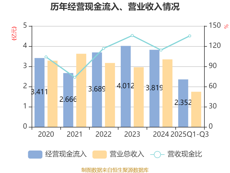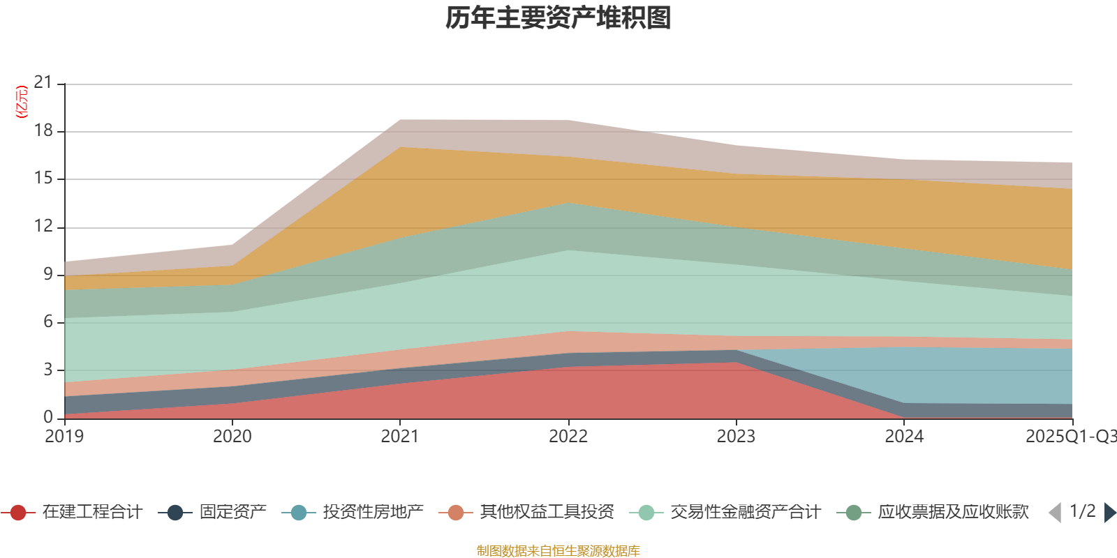 资产重大变化方面,截至2025年三季度末,公司货币资金较上年末增加17.2%,占公司总资产比重上升4.96个百分点;交易性金融资产合计较上年末减少22%,占公司总资产比重下降4.51个百分点;应收票据及应收账款较上年末减少18.6%,占公司总资产比重下降2.22个百分点;存货较上年末增加63.69%,占公司总资产比重上升1.01个百分点。