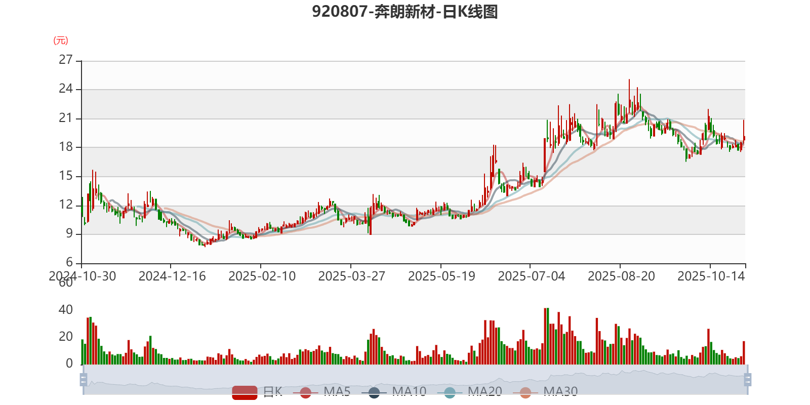 以10月30日收盘价计算,奔朗新材目前市盈率(TTM)约为122.98倍,市净率(LF)约3.68倍,市销率(TTM)约5.84倍。