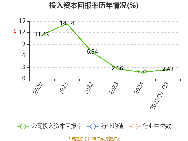 盈利能力方面, 2025年前三季度公司加权平均净资产收益率为3.17%,同比上升0.39个百分点。公司2025年前三季度投入资本回报率为2.49%,较上年同期上升0.63个百分点。