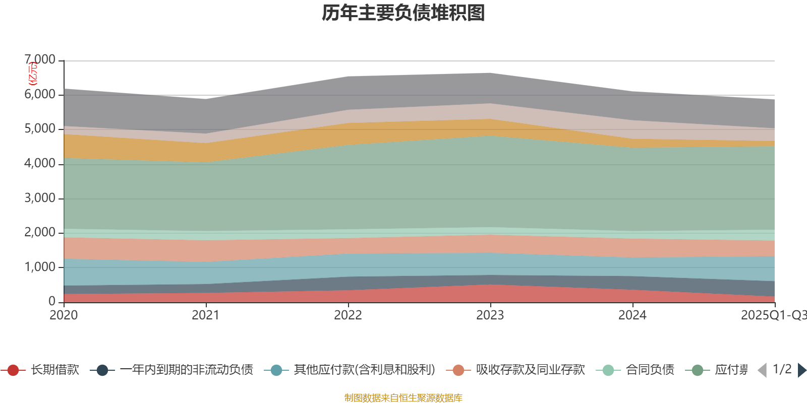负债重大变化方面,截至2025年三季度末,公司长期借款较上年末减少55.1%,占公司总资产比重下降2.05个百分点;其他应付款(含利息和股利)较上年末增加33.88%,占公司总资产比重上升2.03个百分点;短期借款较上年末减少31.72%,占公司总资产比重下降1.72个百分点;拆入资金较上年末减少43.08%,占公司总资产比重下降1.14个百分点。