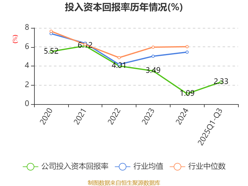 盈利能力方面, 2025年前三季度公司加权平均净资产收益率为2.77%,同比上升0.4个百分点。公司2025年前三季度投入资本回报率为2.33%,较上年同期上升0.78个百分点。
