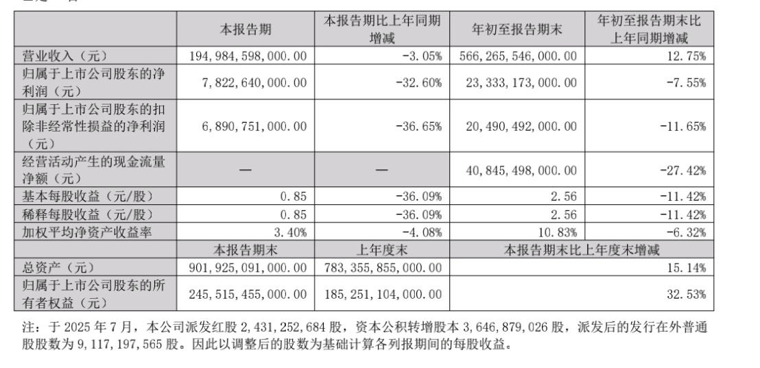 上证报中国证券网讯(记者黎灵希)10月30日晚,比亚迪披露2025年三季报。第三季度,公司实现营业收入1949.85亿元,同比下降3.05%;归母净利润78.23亿元,同比下降32.6%。今年前三季度,公司实现营业收入5662.66亿元,同比增长12.75%;归母净利润233.33亿元,同比下降7.55%。