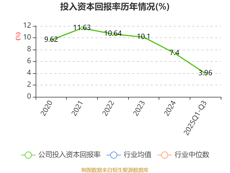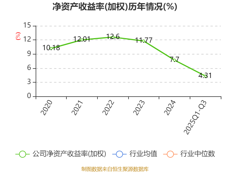 盈利能力方面, 2025年前三季度公司加权平均净资产收益率为4.31%,同比下降1.25个百分点。公司2025年前三季度投入资本回报率为3.96%,较上年同期下降0.09个百分点。