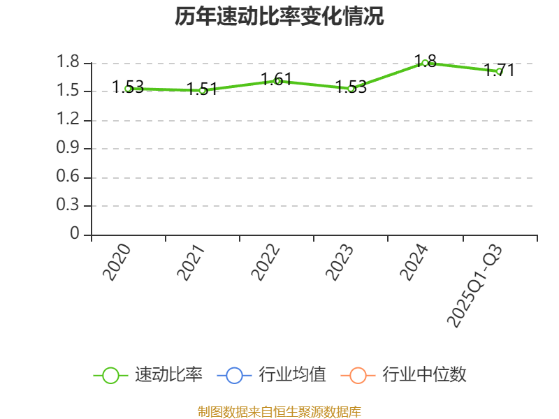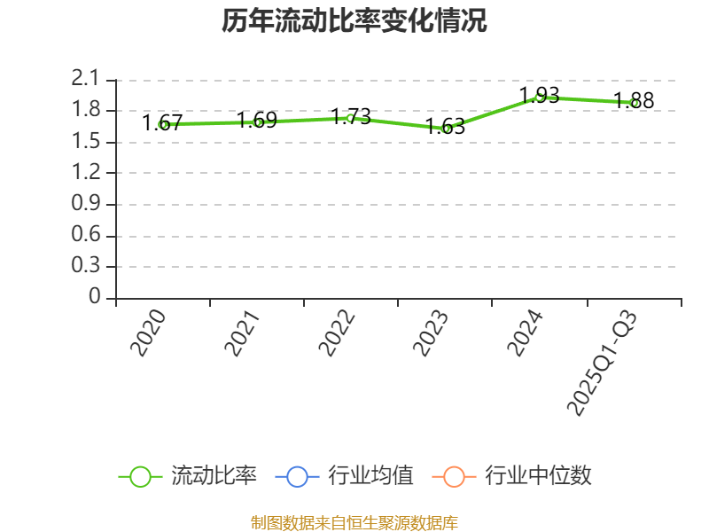2025年前三季度,公司流动比率为1.88,速动比率为1.71。