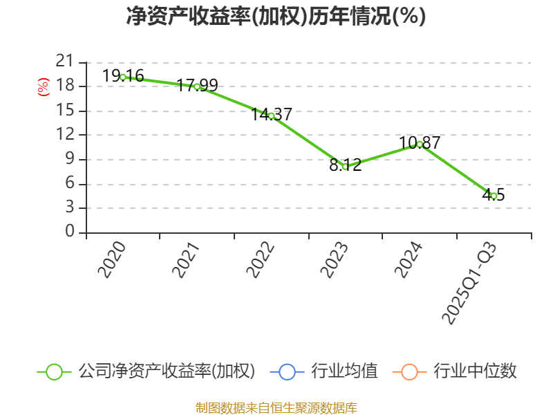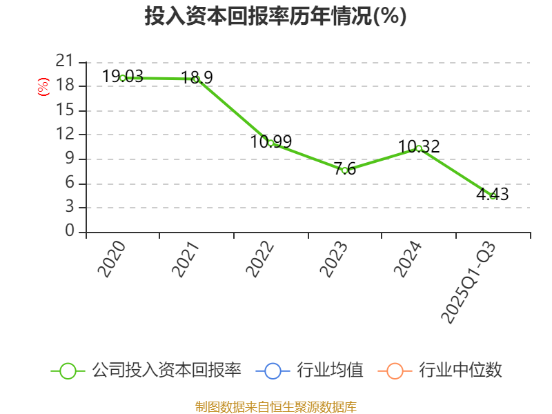 盈利能力方面, 2025年前三季度公司加权平均净资产收益率为4.5%,同比下降3.72个百分点。公司2025年前三季度投入资本回报率为4.43%,较上年同期下降3.4个百分点。