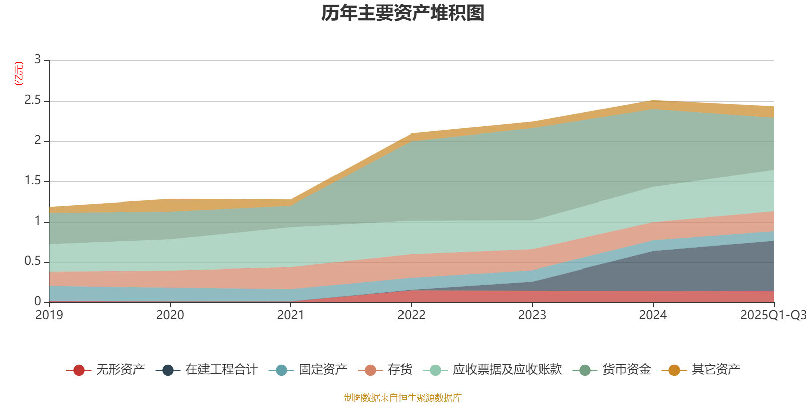 资产重大变化方面,截至2025年三季度末,公司货币资金较上年末减少32.88%,占公司总资产比重下降11.84个百分点;在建工程合计较上年末增加26.32%,占公司总资产比重上升5.96个百分点;应收票据及应收账款较上年末增加16.83%,占公司总资产比重上升3.57个百分点;存货较上年末增加10.3%,占公司总资产比重上升1.25个百分点。