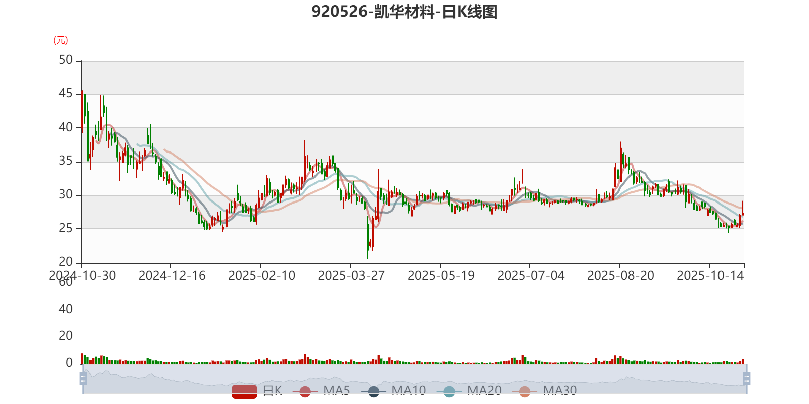 以10月30日收盘价计算,凯华材料目前市盈率(TTM)约为141.68倍,市净率(LF)约10.05倍,市销率(TTM)约19.74倍。