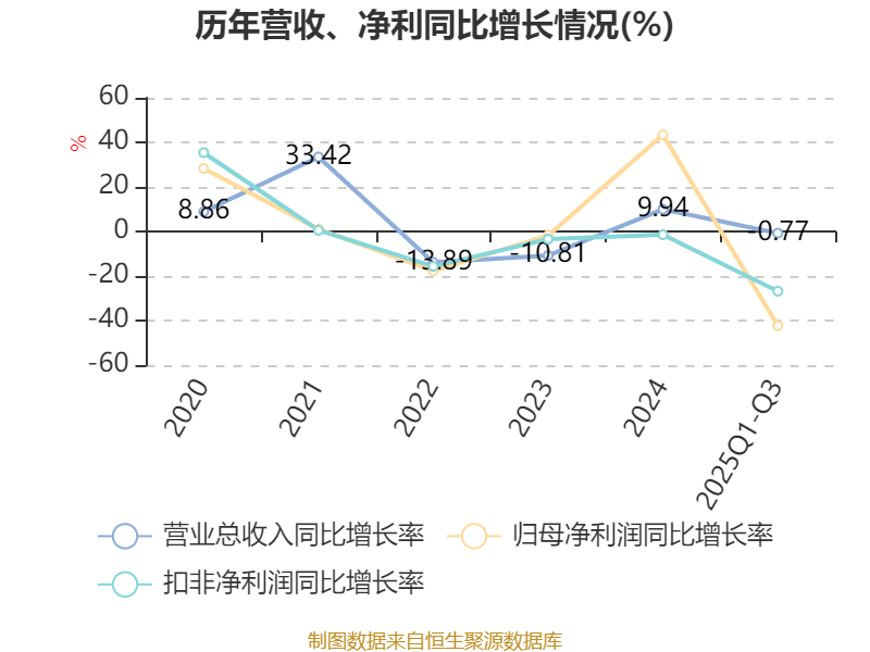 负债重大变化方面,截至2025年三季度末,公司应付票据及应付账款较上年末减少42.89%,占公司总资产比重下降3.45个百分点;应交税费较上年末减少27.4%,占公司总资产比重下降0.16个百分点;应付职工薪酬较上年末减少11.18%,占公司总资产比重下降0.08个百分点;其他流动负债较上年末增加1.66%,占公司总资产比重上升0.06个百分点。