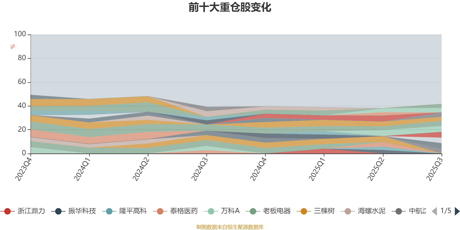 截至2025年三季度末,基金十大重仓股分别是晨光股份、金域医学、百润股份、太阳纸业、欧派家居、中航沈飞、川仪股份、中航光电、三一重工、杭氧股份。